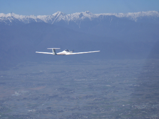 長野県松本盆地上空を飛行中のタイフーン17E JA2362