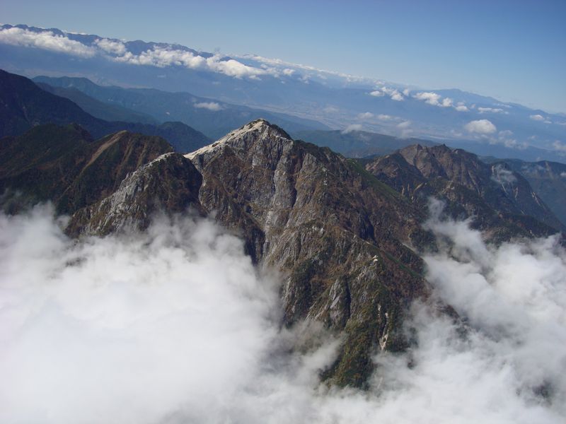 甲斐駒ケ岳9,731フィート(約2,919m)、花崗岩が表面に険しい山肌を呈している