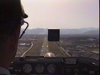 (エアーラインの旅客機の離着陸の間をぬっての着陸)